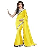 Tarumaru Women's Georgette Yellow Color And Black Border Work Saree With Blouse Piece (VF_VC120)