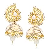 Sonam picked out a pair of Sunita Kapoor jumkas to complement her desi look. Since the saree and the blouse had heavy work, she decided to use minimal accessories.